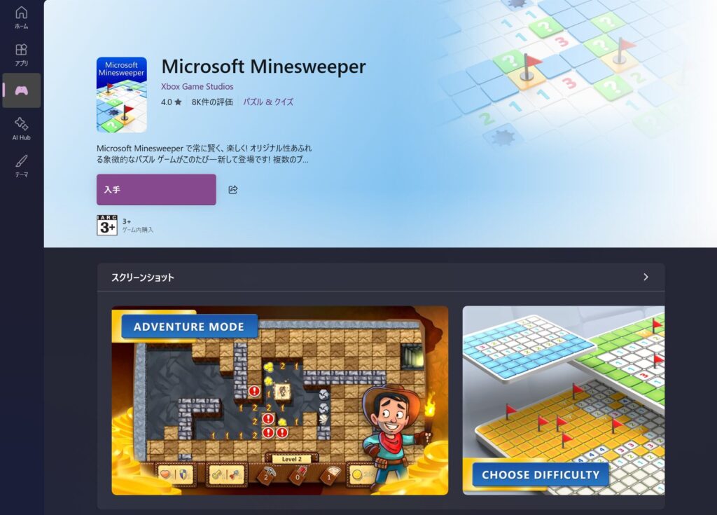 マイクロソフトストアからインストールして遊ばないといけないようです。