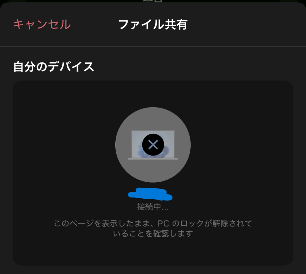 4. PCへ送信: 連携しているPCの名前が表示されるので、それをタップします。