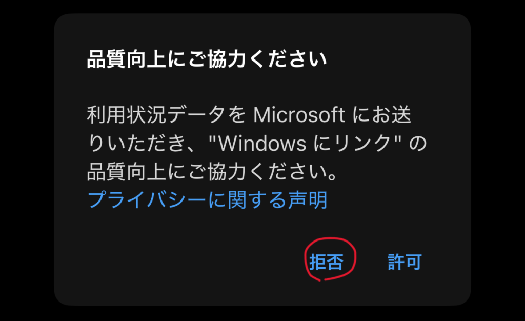 2. iPhone側の操作: App Storeから「Windows にリンク」アプリをインストールし、PCのQRコードをスキャンします。