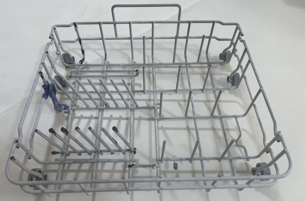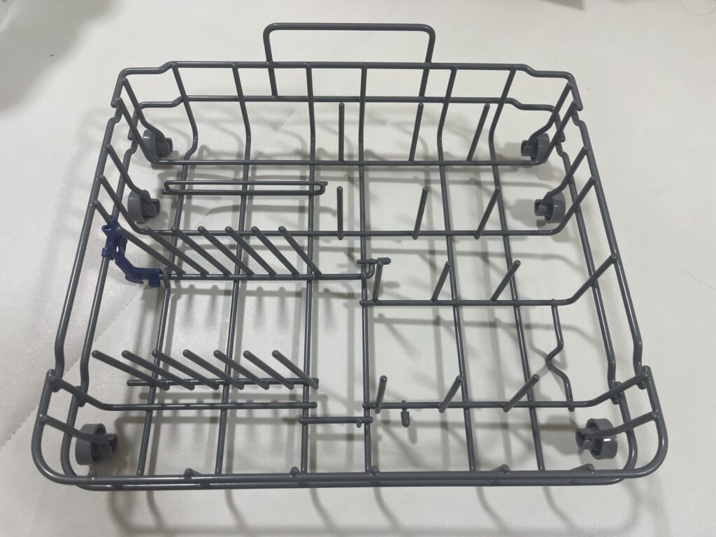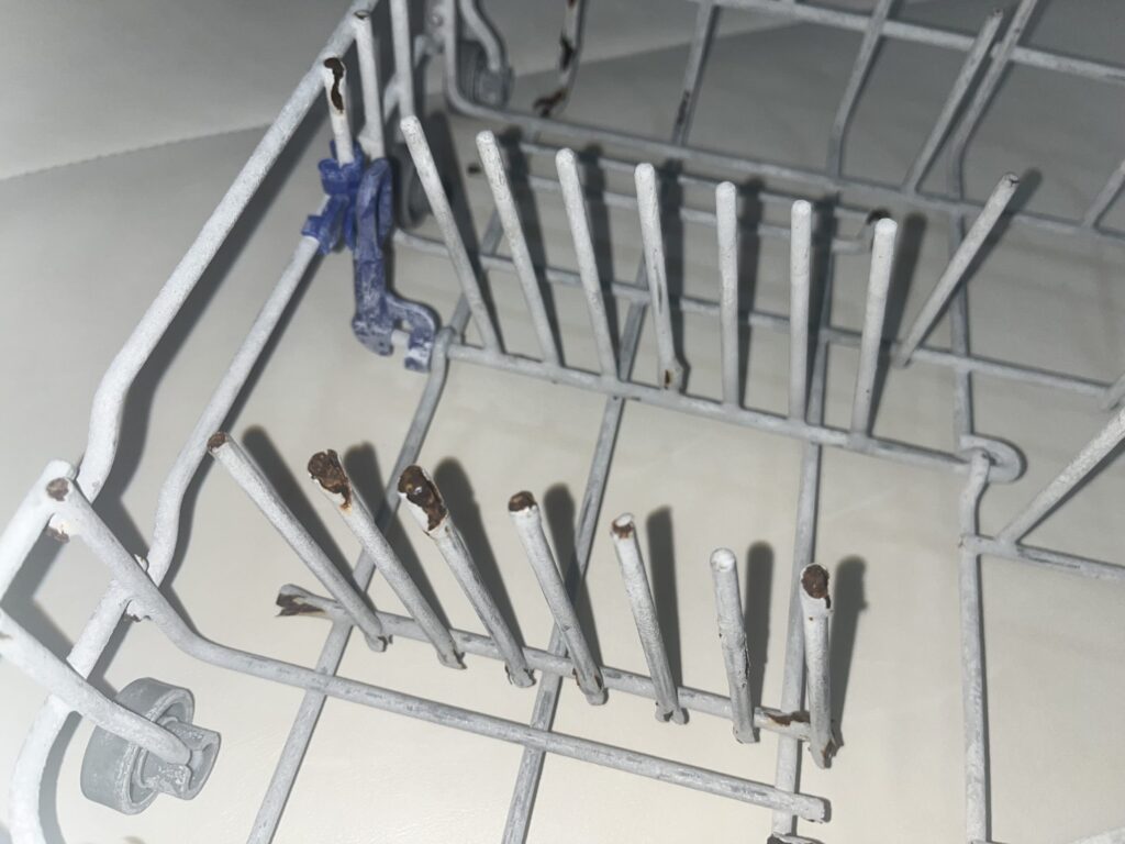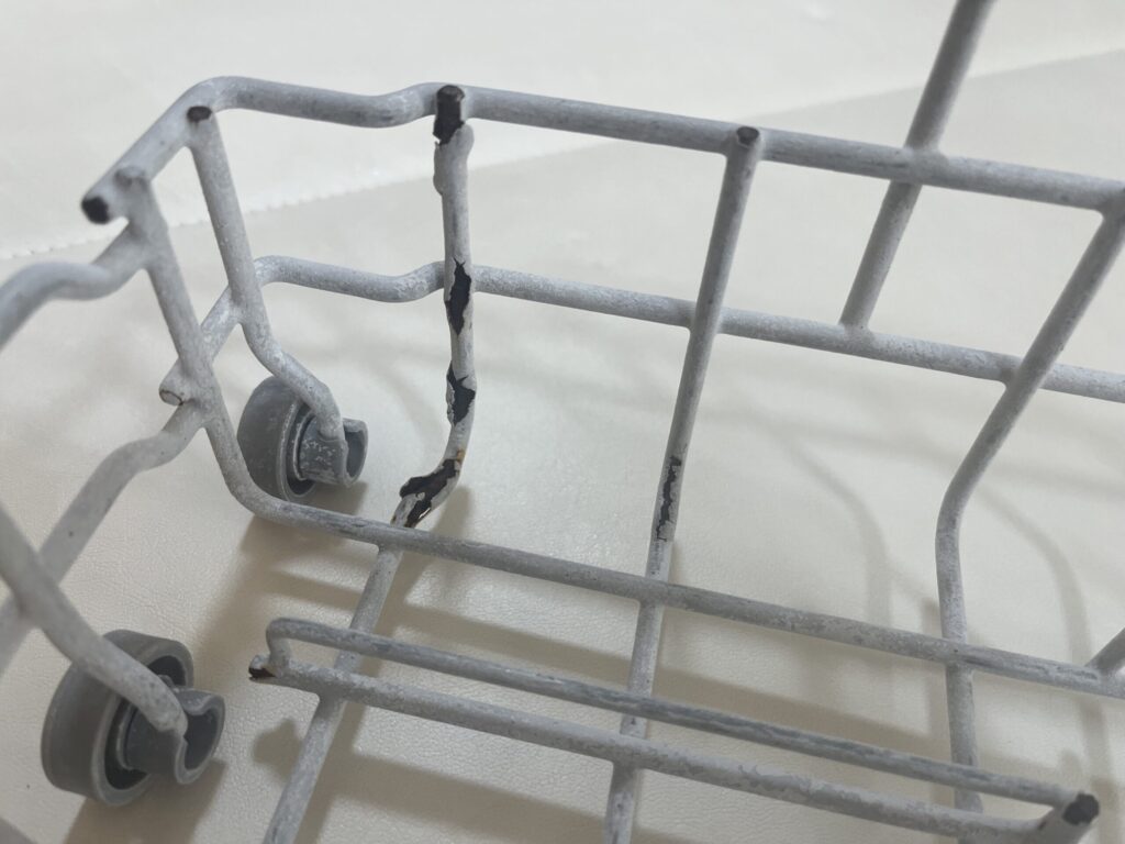 そんな食洗機のお皿を並べるカゴのビニルの皮膜が剥げて、中の金属が錆びてきました。